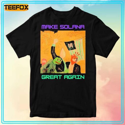 Looking to add a splash of fun and creativity to your wardrobe? Look no further than the Make Solana Great Again Frog And Dog Unisex T-Shirt. This unique t-shirt merges humor and style effortlessly, featuring a delightful design of a frog and a dog on a mission to make Solana great again. The vibrant colors and intricate details of the design make this shirt a standout piece for any casual outing or relaxed hangout with friends. Whether you’re a dog lover, frog enthusiast, or simply appreciate a good laugh, this t-shirt is sure to bring a smile to your face and spark conversations wherever you go.