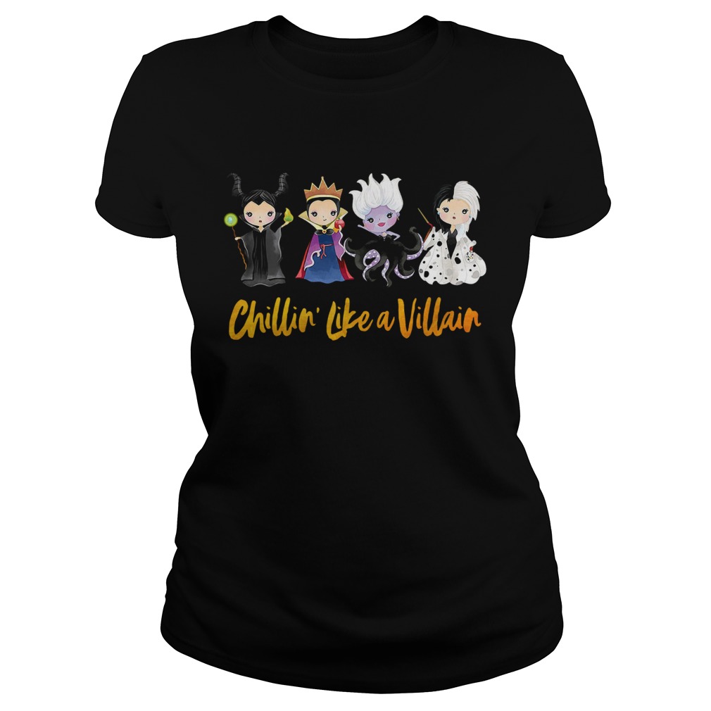 Maleficent The Evil Queen Cruella De Vil Ursula chillin like a villain shirt, hoodie, sweater, longsleeve and ladies t-shirt