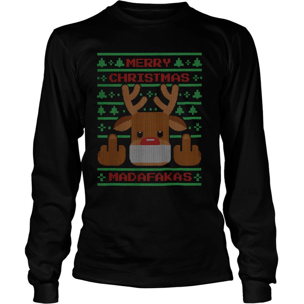 Merry Christmas Madafakas Reindeer Showing Middle Fingers To Evil Ugly Christmas shirt, hoodie, sweater, longsleeve and ladies t-shirt