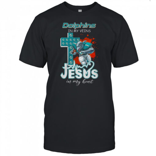 Miami Dolphins In My Veins Jesus In My Heart T Shirt, hoodie, sweater, longsleeve and ladies t-shirt
