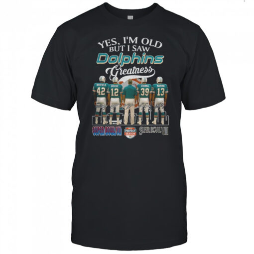 Are you a devoted Miami Dolphins fan who has witnessed the team’s greatness over the years? Relive those iconic moments with the Miami Dolphins yes I’m old but I saw Dolphins greatness city skyline signatures shirt. This unique shirt captures the essence of the city skyline with artistic signatures of your favorite Dolphins players. The design is a tribute to the team’s legacy, perfect for true fans who cherish the memories of past victories and look forward to future triumphs.