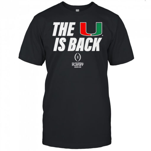 Miami Football 2025 CFP The U Is Back shirt, hoodie, sweater, longsleeve and ladies t-shirt