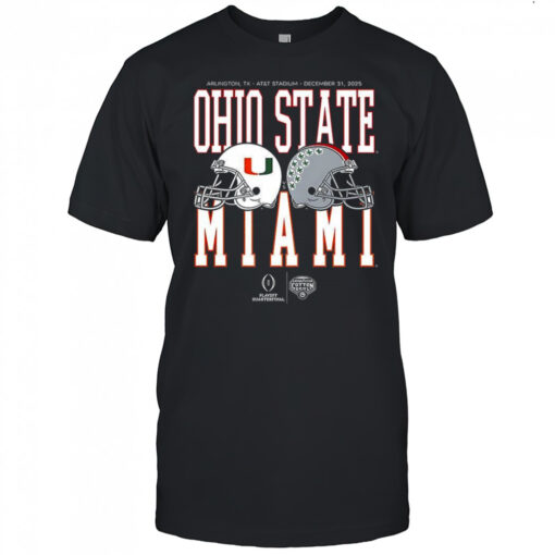 Miami Hurricanes vs Ohio State Buckeyes NCAA Cotton Bowl Classic 2025 matchup AT&T stadium shirt, hoodie, sweater, longsleeve and ladies t-shirt