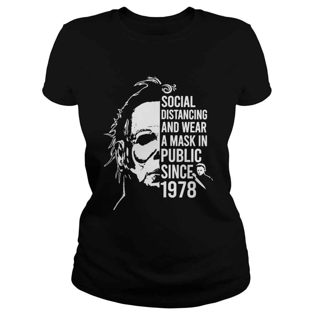 Michael Myers Halloween Social Distancing And Wear A Mask In Public Since 1978 shirt, hoodie, sweater, longsleeve and ladies t-shirt