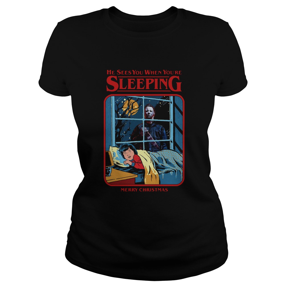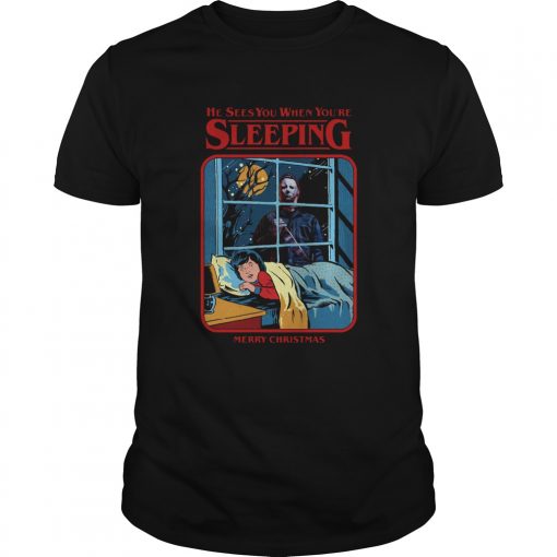 Michael Myers He Sees You When Youre Sleeping Merry Christmas shirt, hoodie, sweater, longsleeve and ladies t-shirt