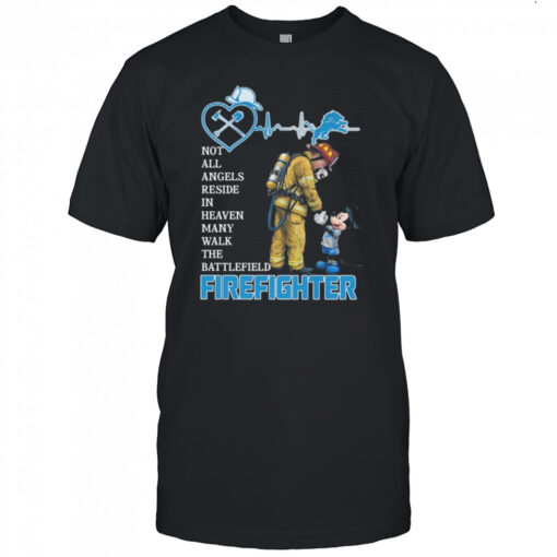 Mickey Mouse Detroit Lions Not All Angels Reside In Heaven Many Walk The Battlefield Firefighter Shirt, hoodie, sweater, longsleeve and ladies t-shirt