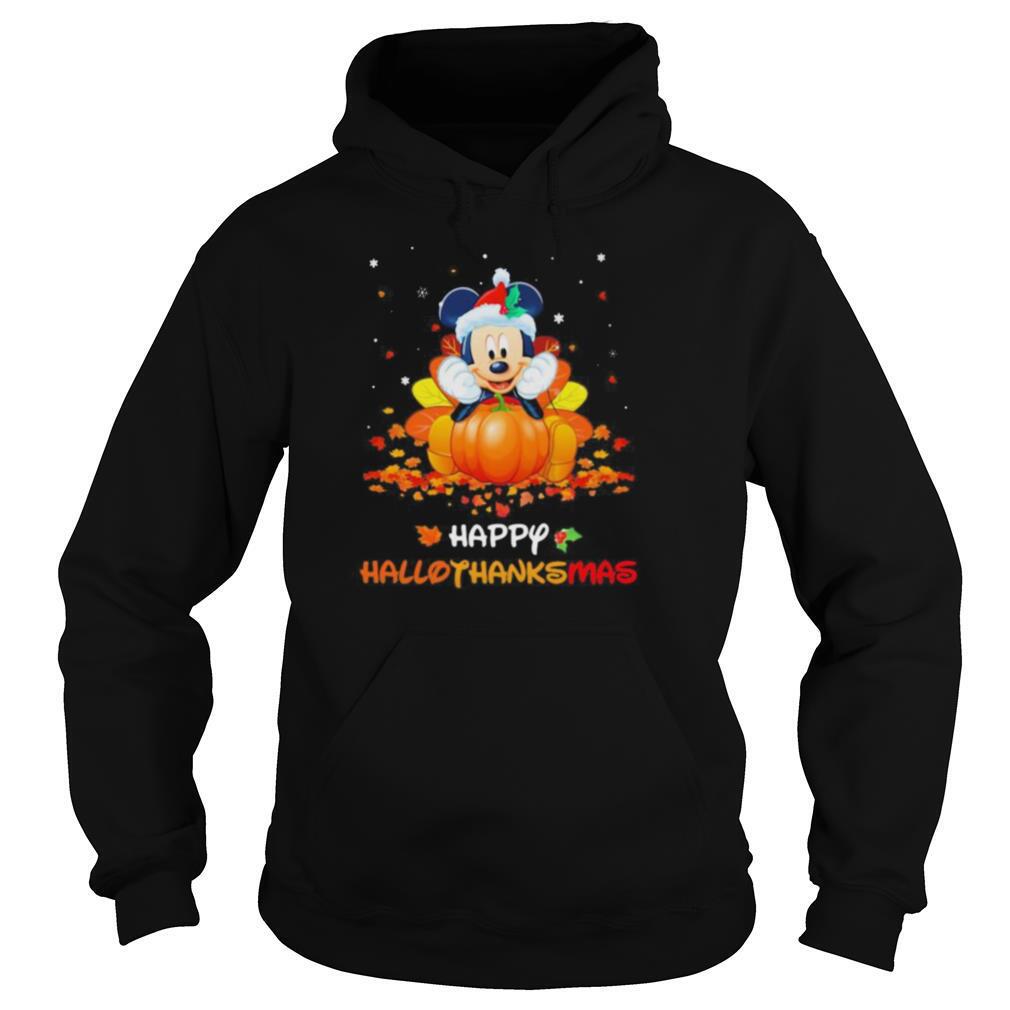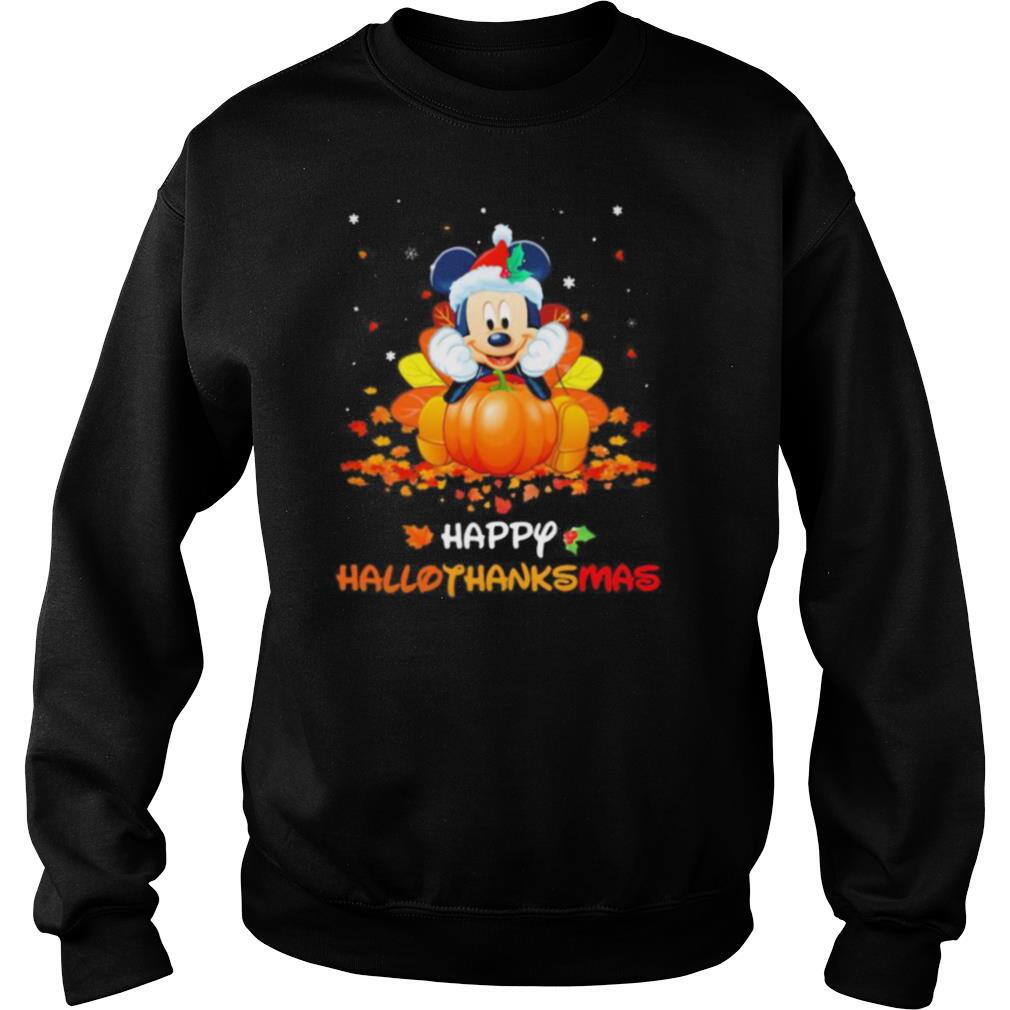Mickey mouse happy hallothanksmas halloween thanksgiving christmas shirt, hoodie, sweater, longsleeve and ladies t-shirt