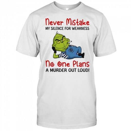 Elevate your wardrobe and mindset with the Minion Grinch never mistake my silence for weakness no one plans a murder out loud shirt. This isn’t just a piece of clothing; it’s a symbol of empowerment. With its bold print and powerful message, this shirt exudes confidence and defiance. Be the envy of onlookers as you confidently flaunt your individuality. Embrace the strength that comes with being unapologetically yourself. Stand out from the crowd and make a bold statement with every step you take. Don’t just wear a shirt; wear a declaration of inner strength. Get yours now and let your silence roar loud and clear!