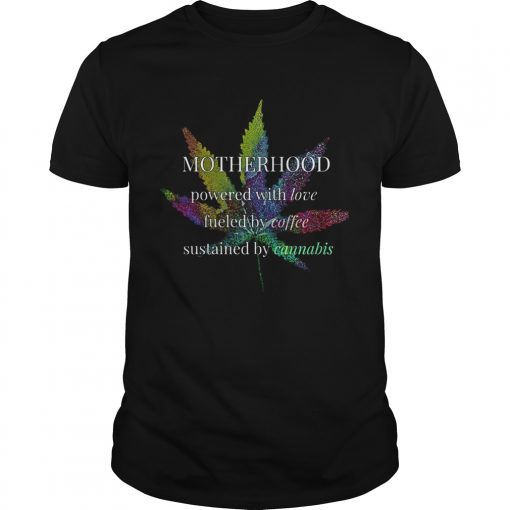 Motherhood Powered By Love Fueled By Coffee By Cannabis shirt, hoodie, sweater, longsleeve and ladies t-shirt