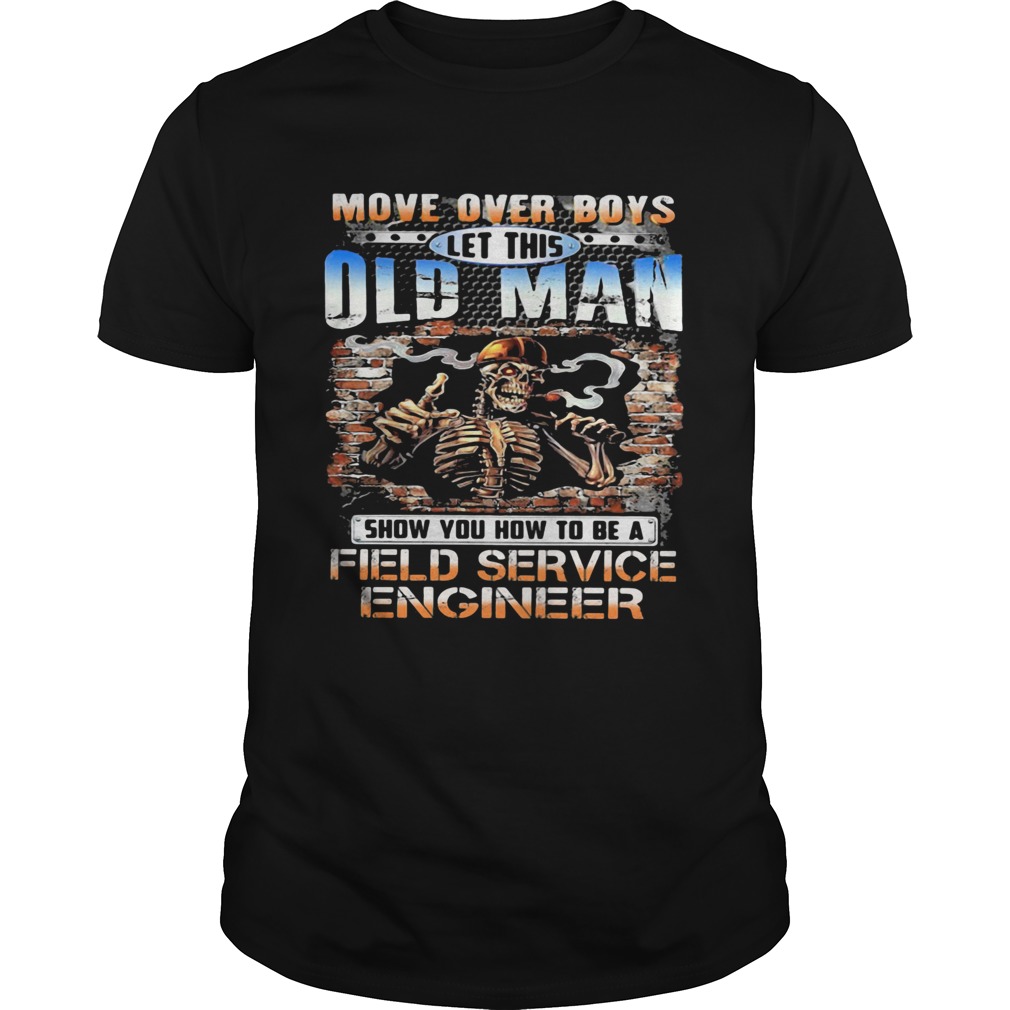MOVE OVER BOYS LET THIS OLD MAN SHOW YOU HOW TO BE A FIELD SERVICE ENGINEER SKULL SMOKING shirt, hoodie, sweater, longsleeve and ladies t-shirt
