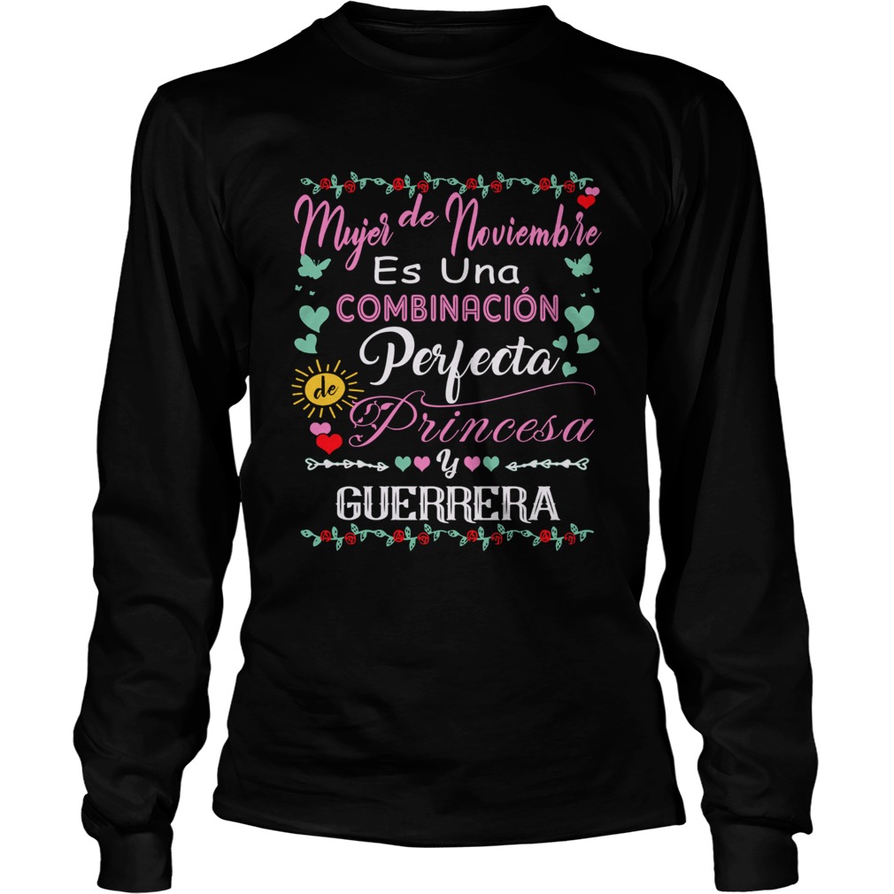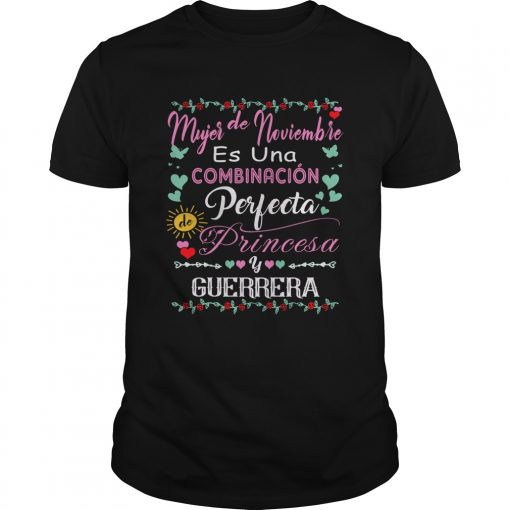 Mujer De Noviembre Es Una Combinacion Perfecta Princesa Guerrera shirt, hoodie, sweater, longsleeve and ladies t-shirt