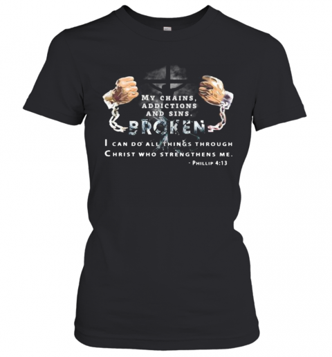My Chains Addictions And Sons Broken I Can Do All Things Through Christ Who Strengthens Me Phillip T-Shirt, hoodie, sweater, longsleeve and ladies t-shirt
