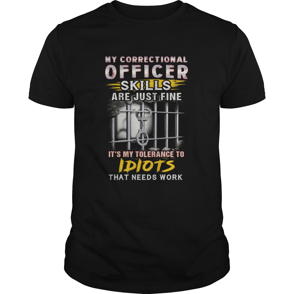 MY CORRECTIONAL OFFICER SKILLS ARE JUST ME ITS MY TOLERANCE TO IDIOTS THAT NEEDS WORK JAIL shirt, hoodie, sweater, longsleeve and ladies t-shirt