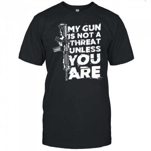 My gun is not a threat unless you are letter shirt, hoodie, sweater, longsleeve and ladies t-shirt