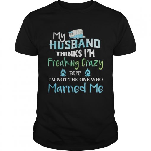 My husband thinks im freaking crazy but im not the one married me shirt, hoodie, sweater, longsleeve and ladies t-shirt