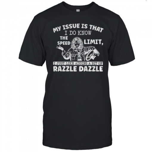 Are you the kind of driver who knows the speed limit like the back of your hand but still craves a touch of flair and style? If so, we have the perfect solution for you – the My issue is that I do know the speed limit I just like adding a bit of razzle dazzle shirt. This unique shirt is designed to cater to your need for speed while adding that extra pizzazz to your wardrobe. With its eye-catching design and bold statement, this shirt is sure to turn heads wherever you go. Whether you’re cruising down the highway or meeting friends for a night out, this shirt will be your go-to choice for a touch of razzle dazzle.