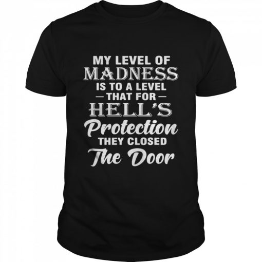 My Level Of Madness Is To A Level That For Hell’s Protection They Closed The Door shirt, hoodie, sweater, longsleeve and ladies t-shirt