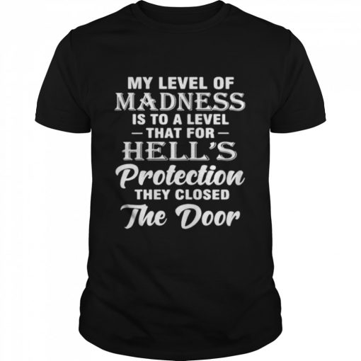 My Level Of Madness Is To A Level That For Hells Protection They Closed The Door shirt, hoodie, sweater, longsleeve and ladies t-shirt