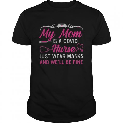 My mom is a covid nurse just wear masks and well be fine shirt, hoodie, sweater, longsleeve and ladies t-shirt
