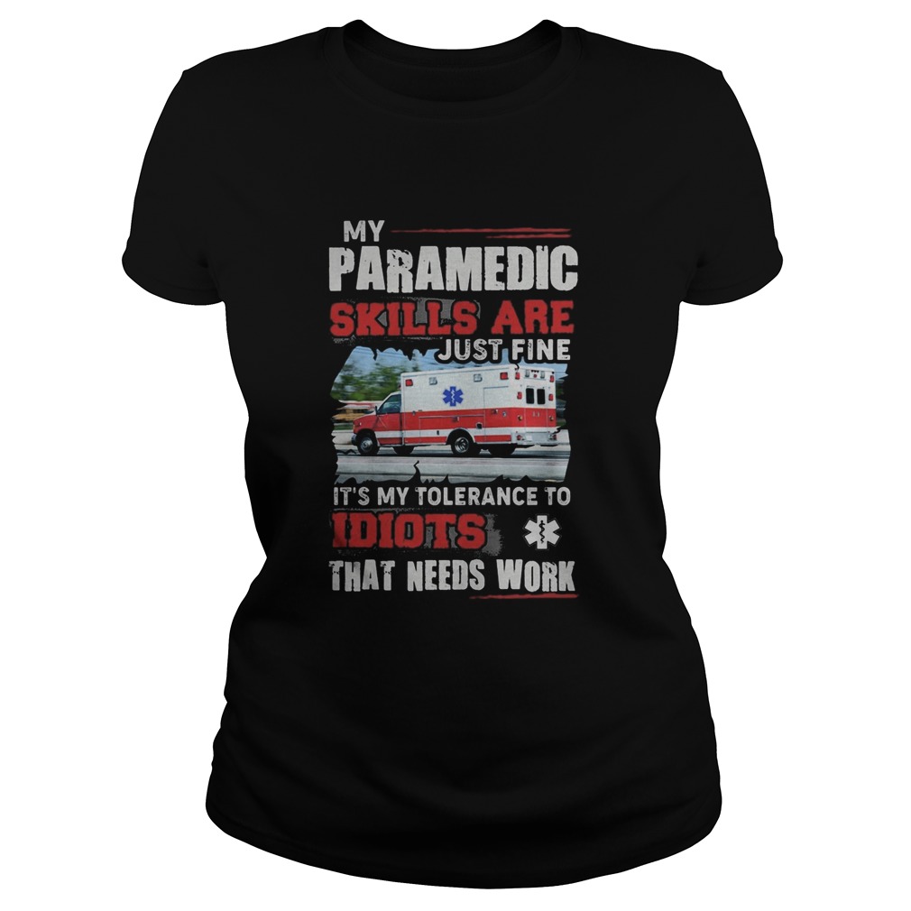 My Paramedic skills are just fine Its my tolerance to idiots that needs work shirt, hoodie, sweater, longsleeve and ladies t-shirt