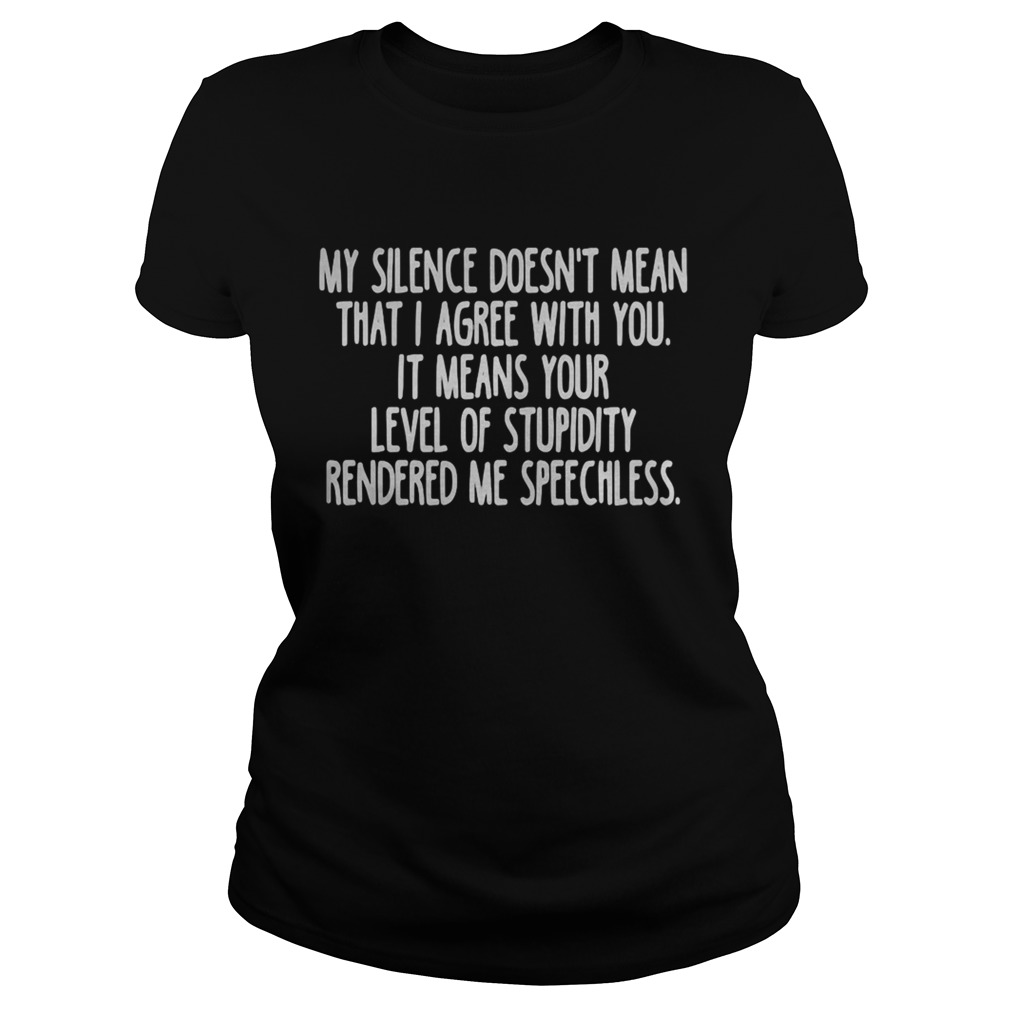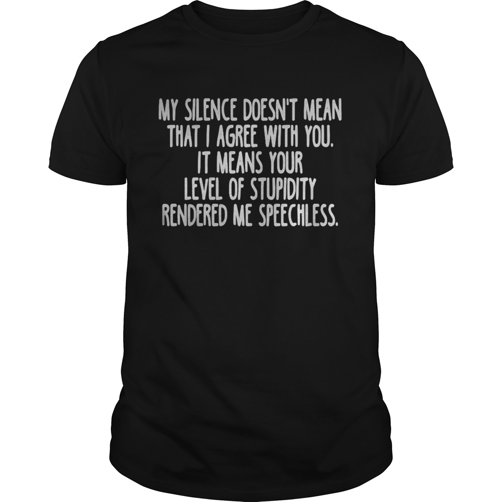 My silence doesnt mean that i agree with you it means your level of stupidity rendered me speechle, hoodie, sweater, longsleeve and ladies t-shirt