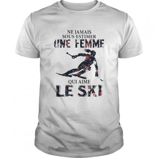 Ne Ja Mais Sous Estimer Une Femme Qui Aime Le Ski shirt, hoodie, sweater, longsleeve and ladies t-shirt