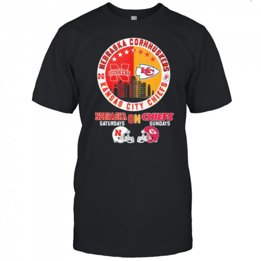Nebraska Cornhuskers on Saturdays and Kansas City Chiefs on Sundays helmet logo mashup shirt, hoodie, sweater, longsleeve and ladies t-shirt