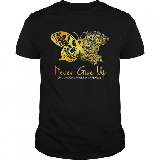Never Give Up Childhood Cancer Awareness Butterfly shirt, hoodie, sweater, longsleeve and ladies t-shirt