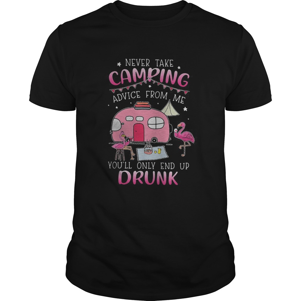 Never take camping advice from me youl only end up drunk flamingo shirt, hoodie, sweater, longsleeve and ladies t-shirt