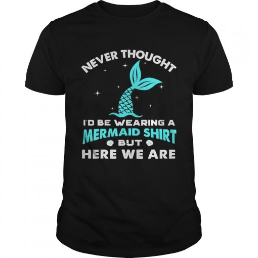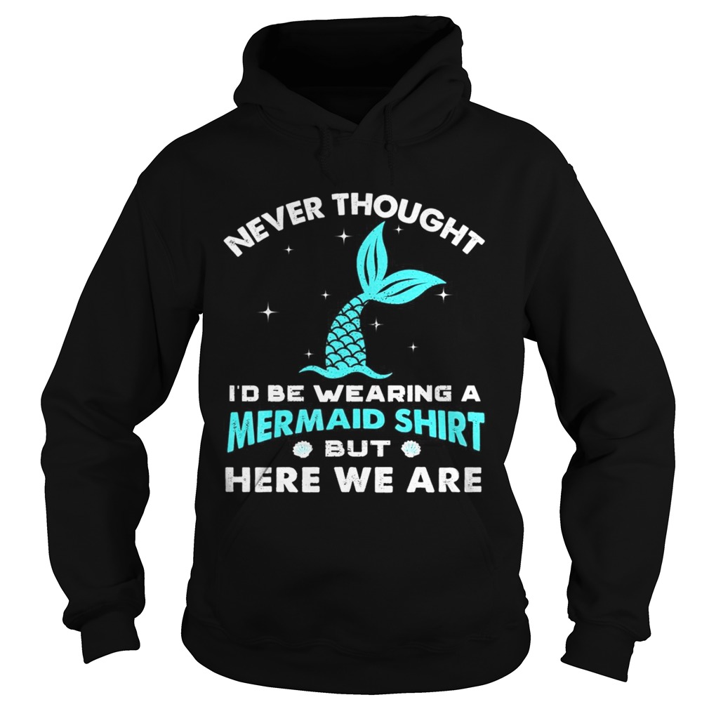 Never thought be wearing a mermaid here we are shirt, hoodie, tank top and sweater