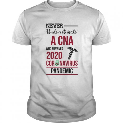 Short sleeve graphic t-shirt Never underestimate a CNA who survived 2020 coronavirus pandemic shirt . provides the fit and comfort you expect with stylish, modern graphics. Graphic themes range from America to Humor and everything in between. Made on soft, lightweight ring-spun cotton fabric, this t-shirt is made from the same great quality you expect from Hanes. Pre-shrunk so it stands the test of time and tagless back neck label for the ultimate in comfort. Available in a variety of graphics and colors.provides the fit and comfort you expect with stylish, modern graphics. Graphic themes range from America to Humor and everything in between. Made on soft, lightweight ring-spun cotton fabric, this t-shirt is made from the same great quality you expect from Hanes. Pre-shrunk so it stands the test of time and tagless back neck label for the ultimate in comfort. Available in a variety of graphics and colors.