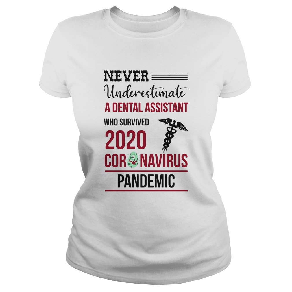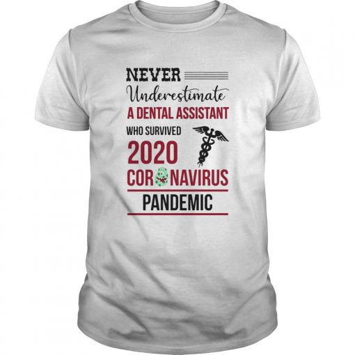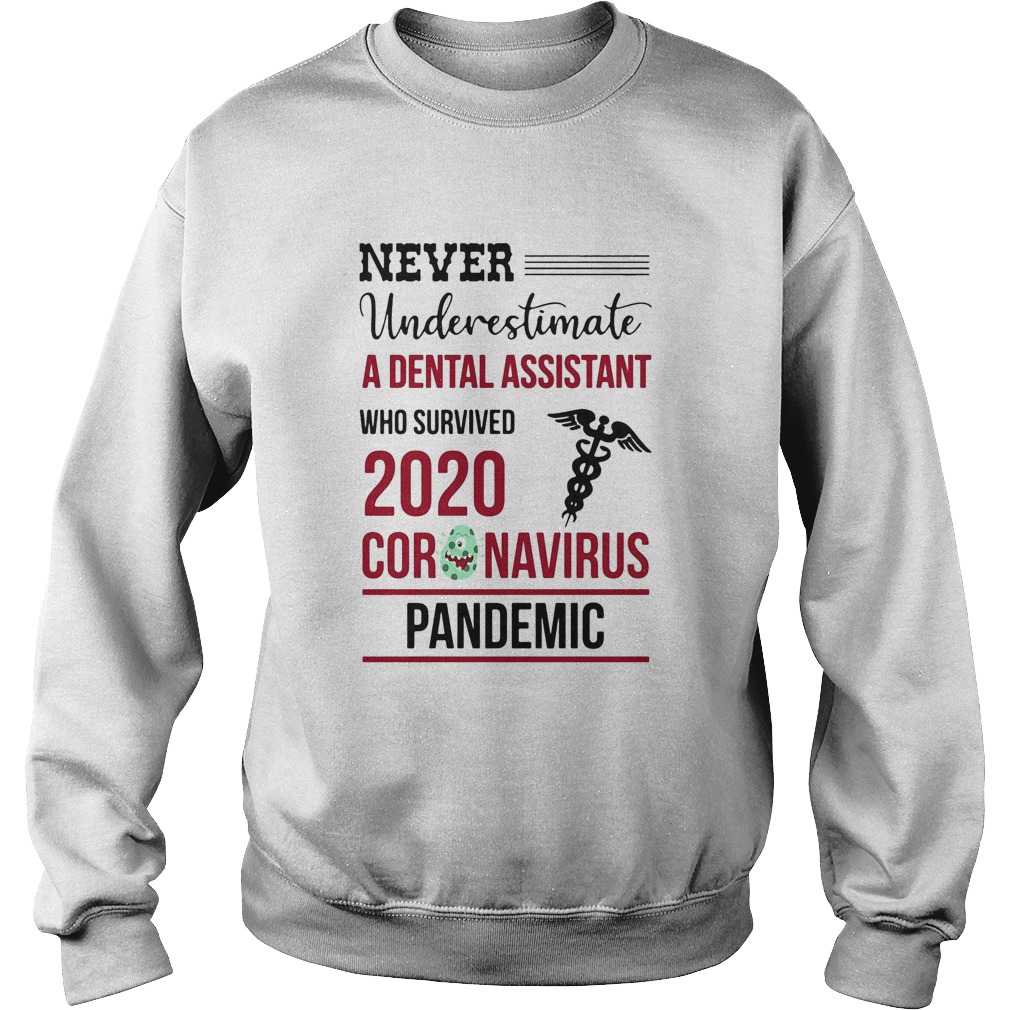 Never underestimate a dental assistant who survived 2020 coronavirus pandemic shirt, hoodie, sweater, longsleeve and ladies t-shirt