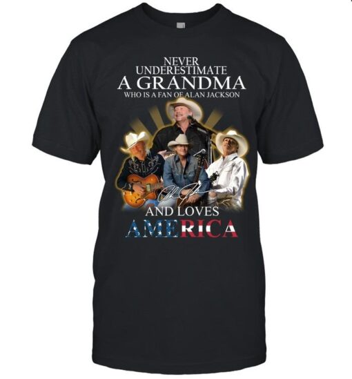 Embrace the spirit of Americana and celebrate the indomitable strength of grandmothers with the Never Underestimate A Grandma Alan Jackson America T-Shirt. Crafted with premium quality materials and attention to detail, this shirt offers unparalleled comfort and style. The thought-provoking design serves as a poignant reminder of the invaluable role grandmothers play in shaping our lives and communities. Let your outfit tell a story and honor the matriarchs in your life by proudly donning this iconic tee. Elevate your wardrobe with a touch of nostalgia and a dash of country flair. Wear it with pride, embody the enduring values it represents, and make a statement that resonates with all generations. Order now and wear your heart on your sleeve with this remarkable tribute to grandmothers and the American spirit.
