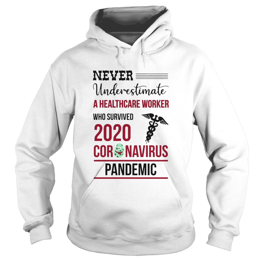 Never underestimate a healthcare worker who survived 2020 coronavirus pandemic shirt, hoodie, sweater, longsleeve and ladies t-shirt