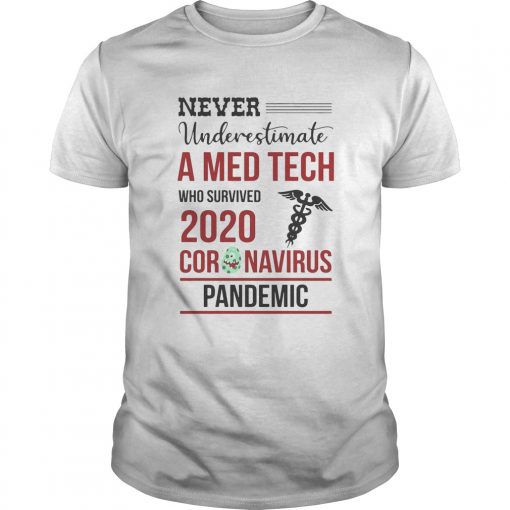 Never underestimate a med tech who survived 2020 coronavirus pandemic shirt, hoodie, sweater, longsleeve and ladies t-shirt