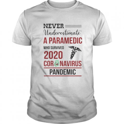 Never underestimate a paramedic who survived 2020 coronavirus pandemic shirt, hoodie, sweater, longsleeve and ladies t-shirt