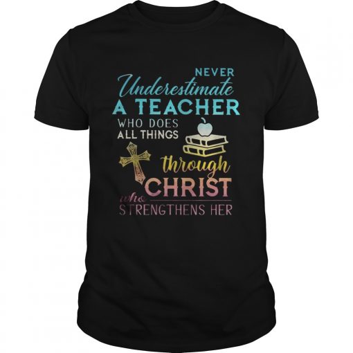 Never Underestimate A Teacher Who Does All Things Through Christ Who Strengthens Her Cross shirt, hoodie, sweater, longsleeve and ladies t-shirt