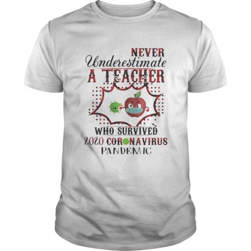 Never underestimate a teacher who survived 2020 coronavirus pandemic apple mask shirt, hoodie, sweater, longsleeve and ladies t-shirt