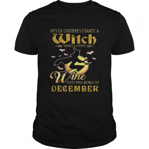 Never underestimate a witch who loves wine and was born in December shirt, hoodie, sweater, longsleeve and ladies t-shirt