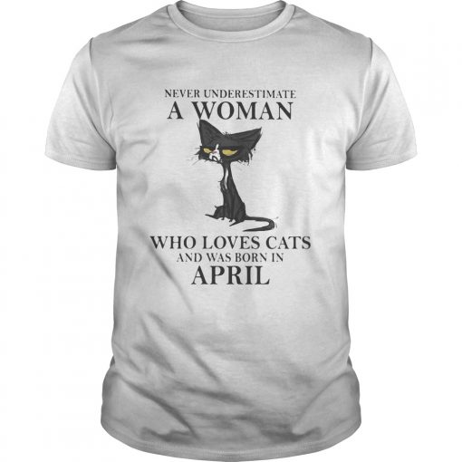 Never underestimate a woman who loves black cats and was born in april shirt, hoodie, sweater, longsleeve and ladies t-shirt