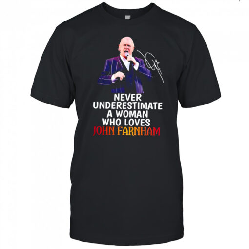 Never underestimate a woman who loves John Farnham signature shirt, hoodie, sweater, longsleeve and ladies t-shirt