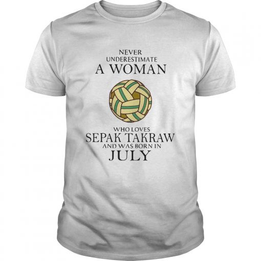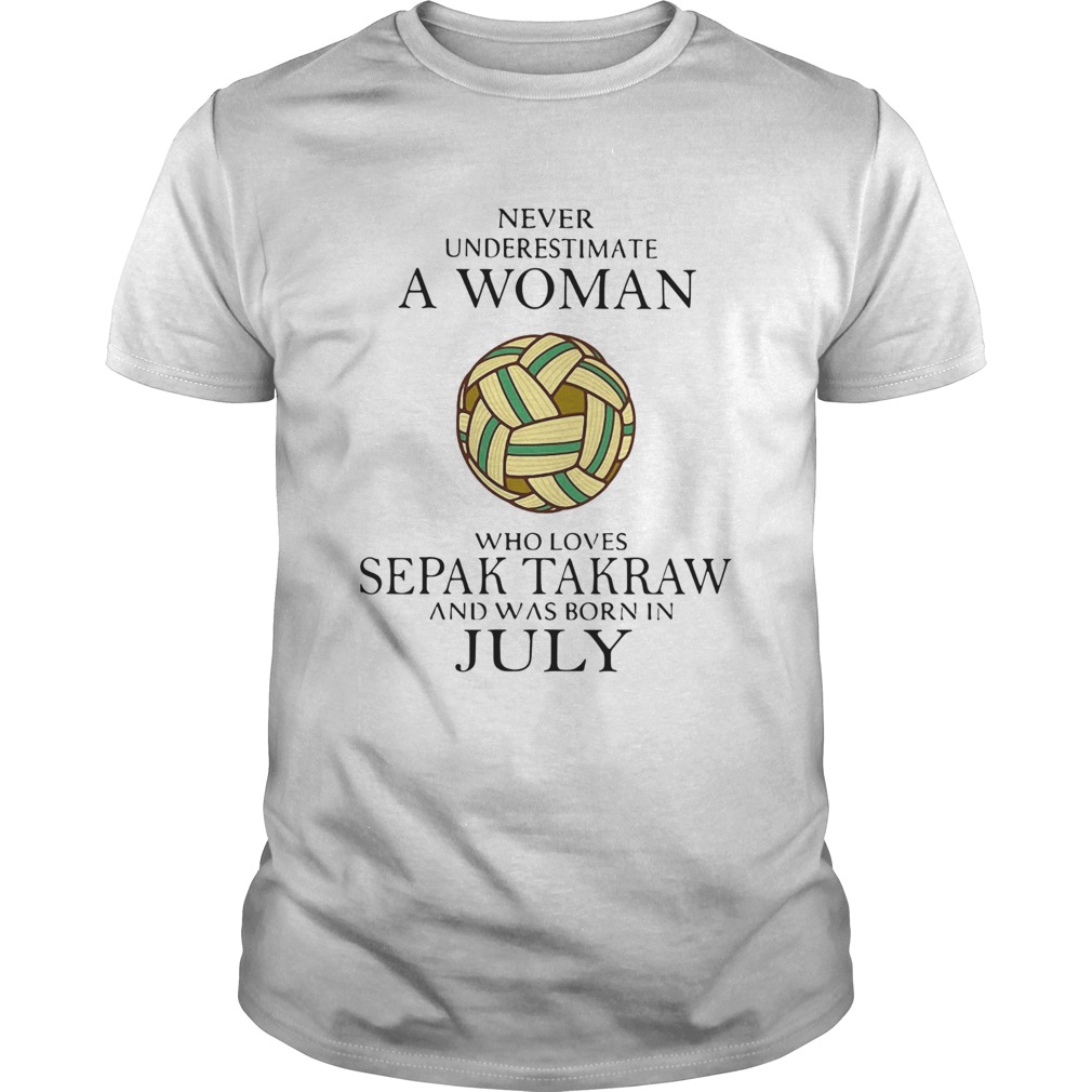 Never Underestimate A Woman Who Loves Sepak Takraw And Was Born In July shirt, hoodie, sweater, longsleeve and ladies t-shirt