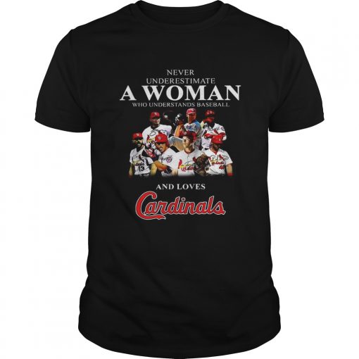 Never underestimate a woman who understands baseball and loves Cardinals shirt, hoodie, sweater, longsleeve and ladies t-shirt