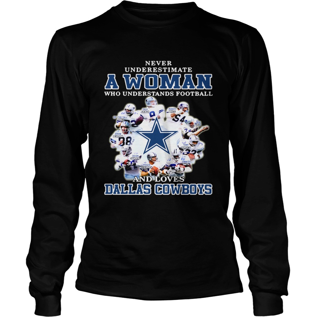 Never underestimate a woman who understands football loves Dallas Cowboys shirt, hoodie, sweater, longsleeve and ladies t-shirt