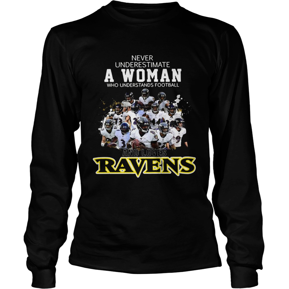 Never underestimate a woman who understands football Ravens shirt, hoodie, sweater, longsleeve and ladies t-shirt