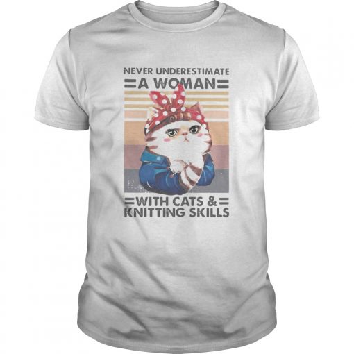Never underestimate a woman with cats and knitting skills vintage retro shirt, hoodie, sweater, longsleeve and ladies t-shirt