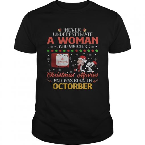 Never Underestimate An October Woman Watches Hallmark Christmas Movies Snoopy Shirt, hoodie, sweater, longsleeve and ladies t-shirt