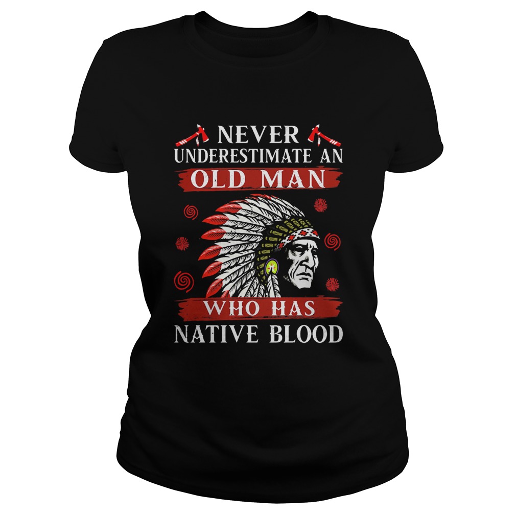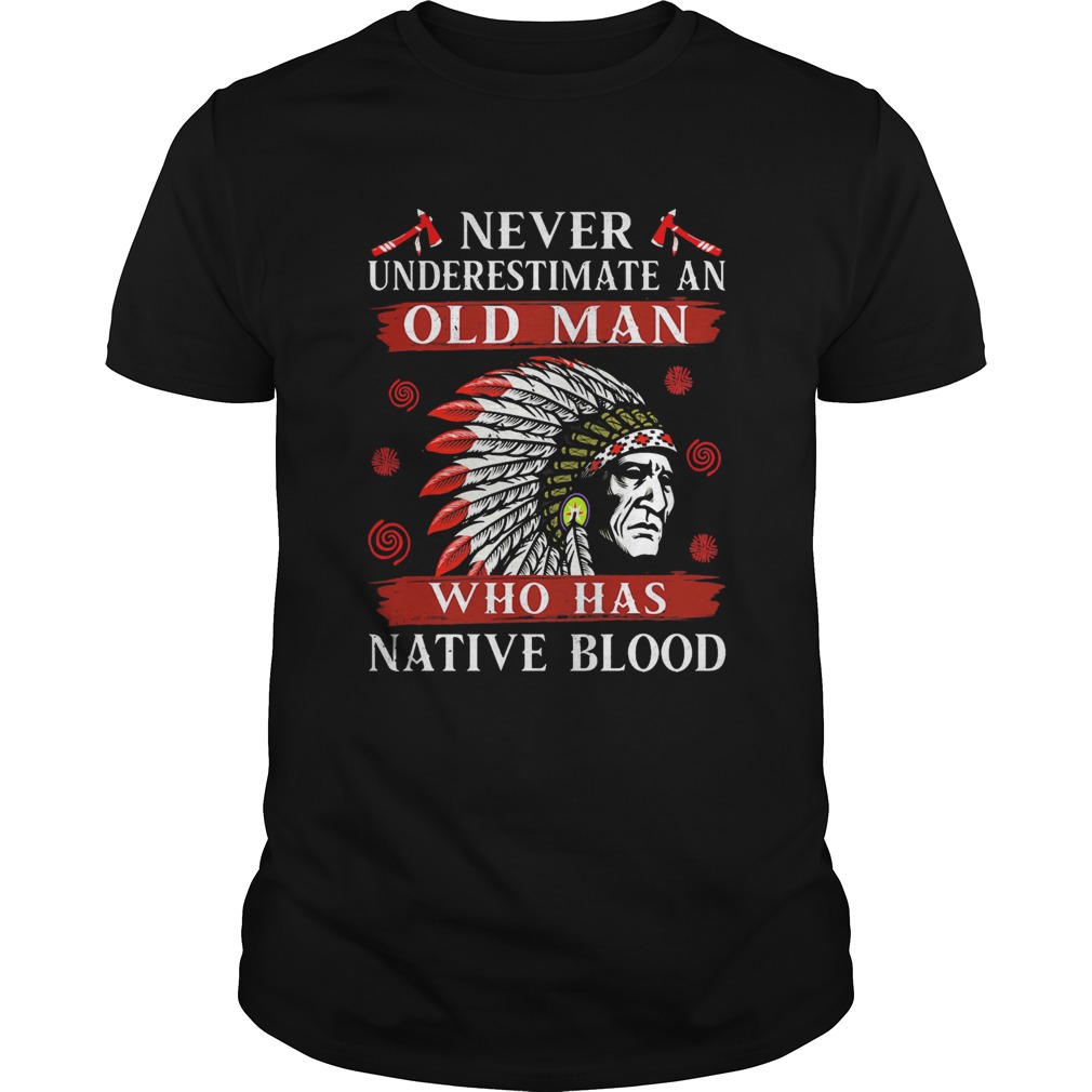 Never underestimate an old man who has native blood shirt, hoodie, sweater, longsleeve and ladies t-shirt