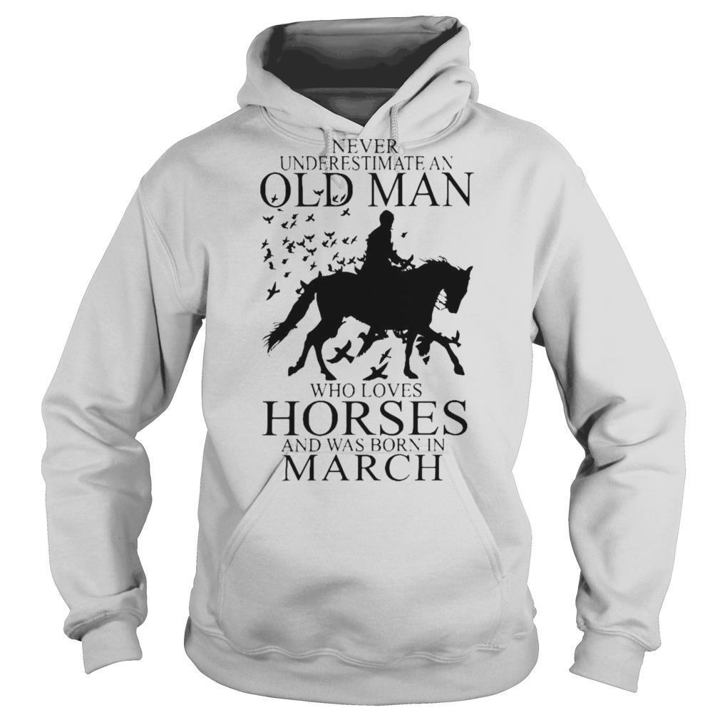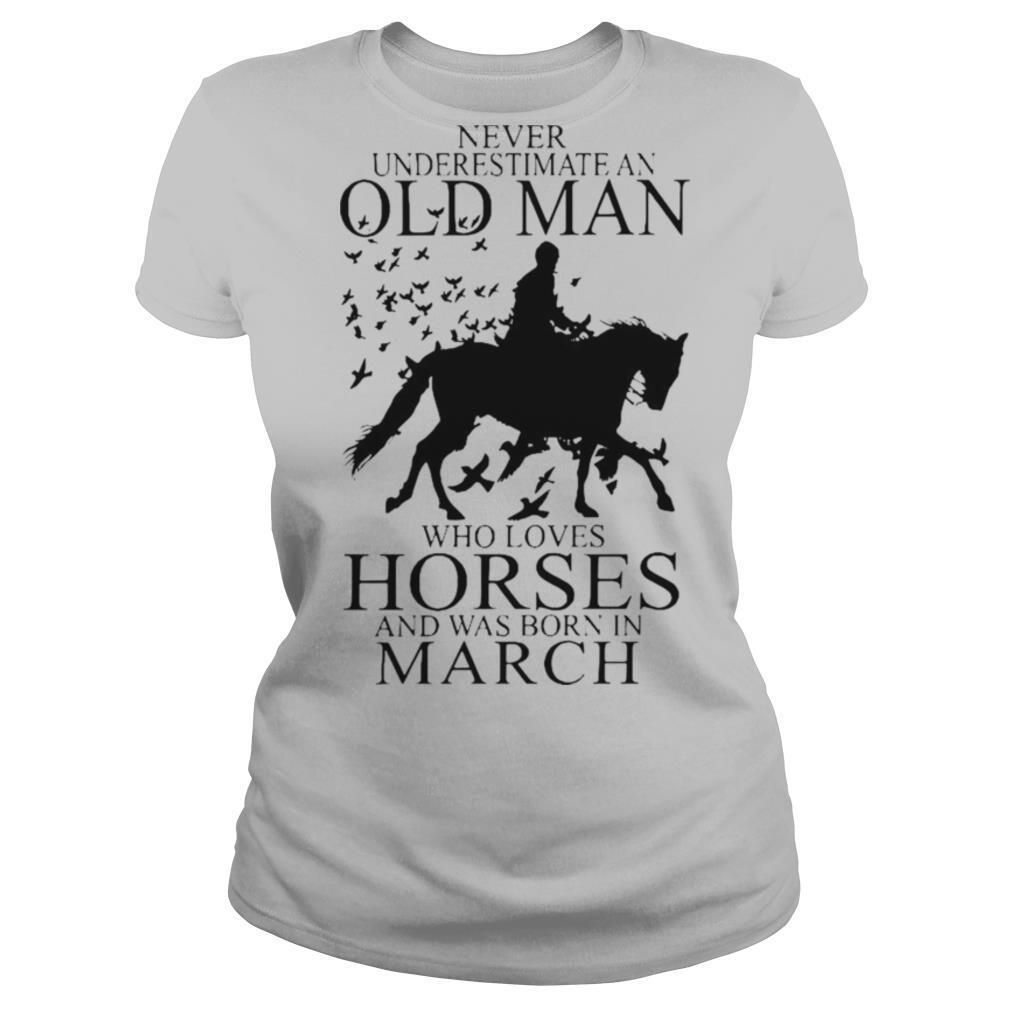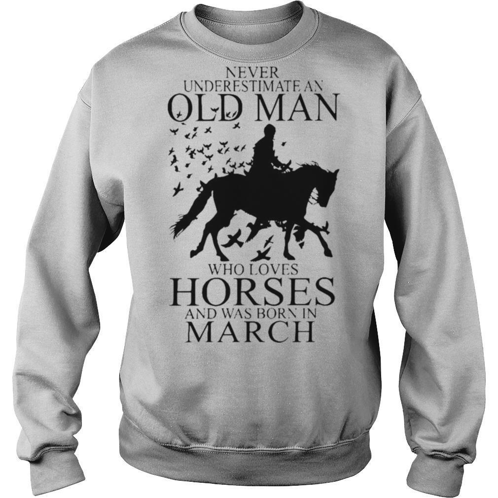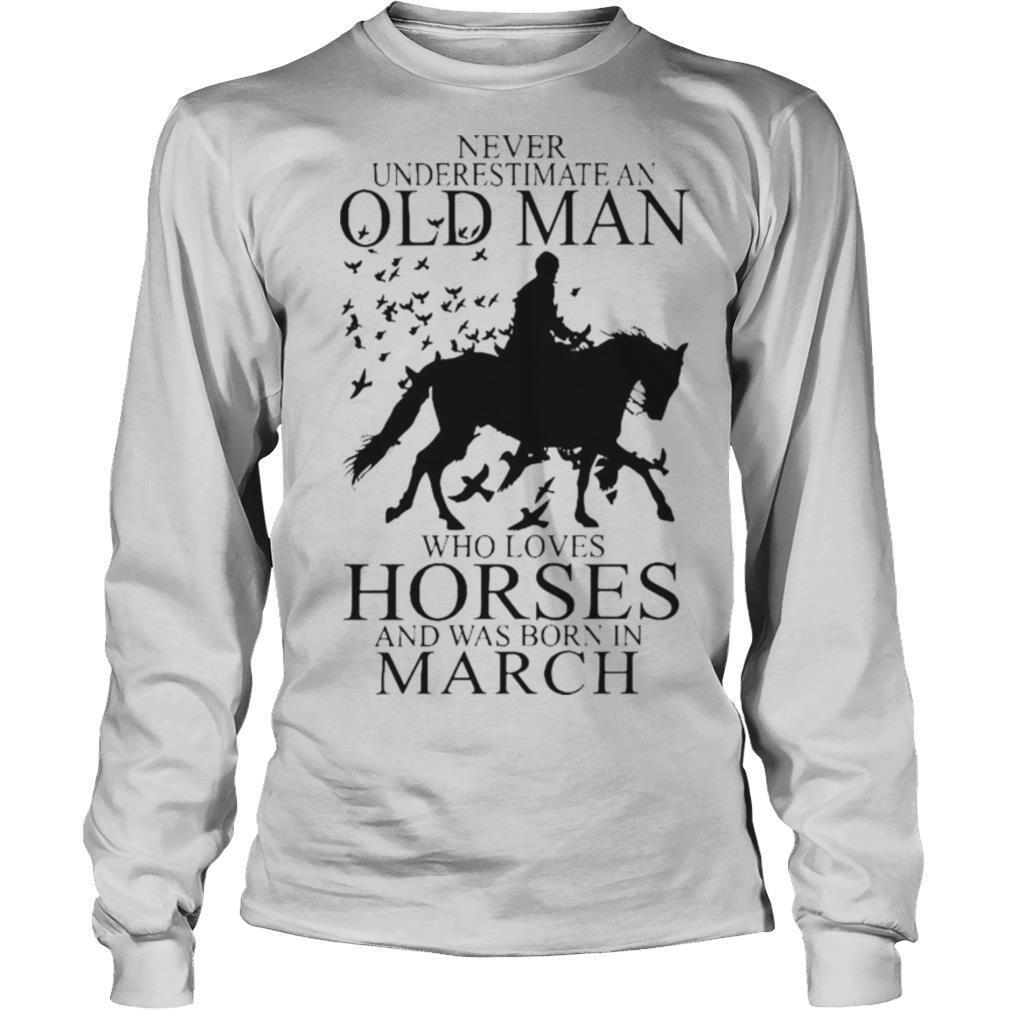 Never Underestimate An Old Man Who Loves Horses And Was Born In March shirt, hoodie, sweater, longsleeve and ladies t-shirt