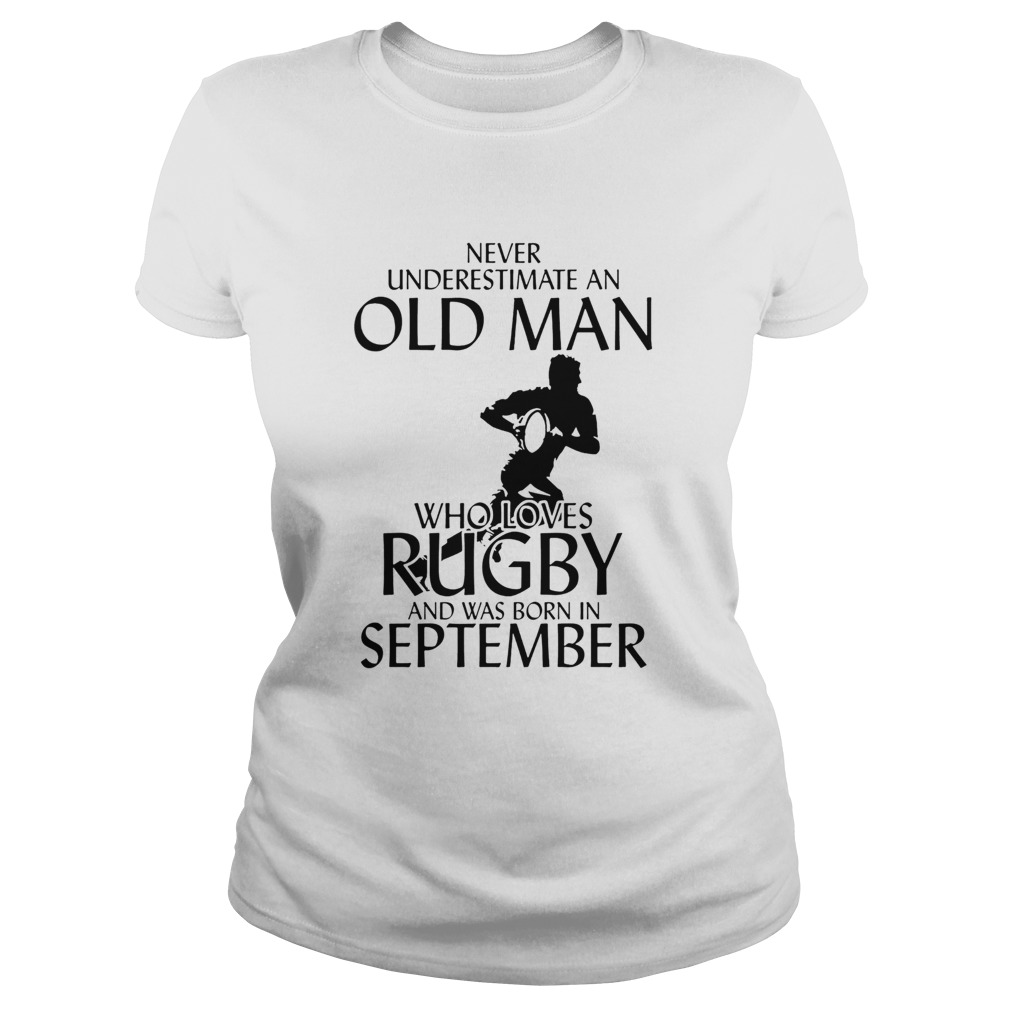 Never underestimate an old man who loves rugby and was born in September shirt, hoodie, sweater, longsleeve and ladies t-shirt